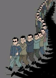 Following a blind person blindly.