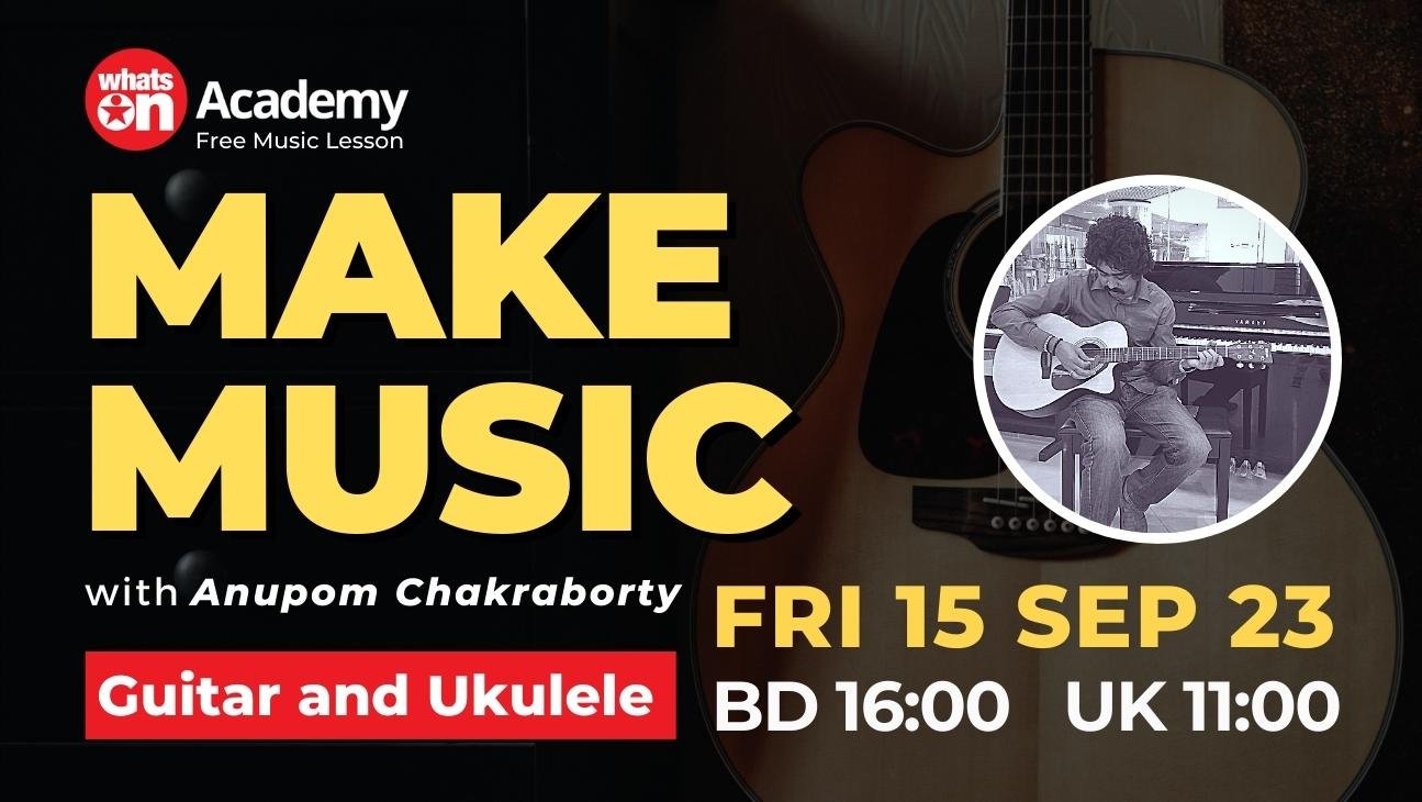 Join our professional learning class on 15th September at 11:00 AM UK time and 16:00 PM BD time, as we unveil the secrets to mastering The Guitar and Ukulele lesson. at WhatsOn Music Academy. Elevate your skills and expand your musical horizons by joining this transformative learning experience. Register now!