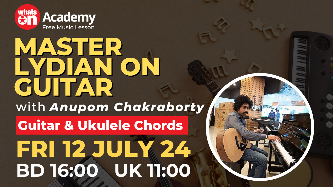 Join our professional learning class on 12th July at 11:00 AM UK time and 16:00 PM BD time. As we unveil the secrets to mastering The Guitar lesson at WhatsOn Music Academy. Elevate your skills and expand your musical horizons by joining this transformative learning experience. Register now!