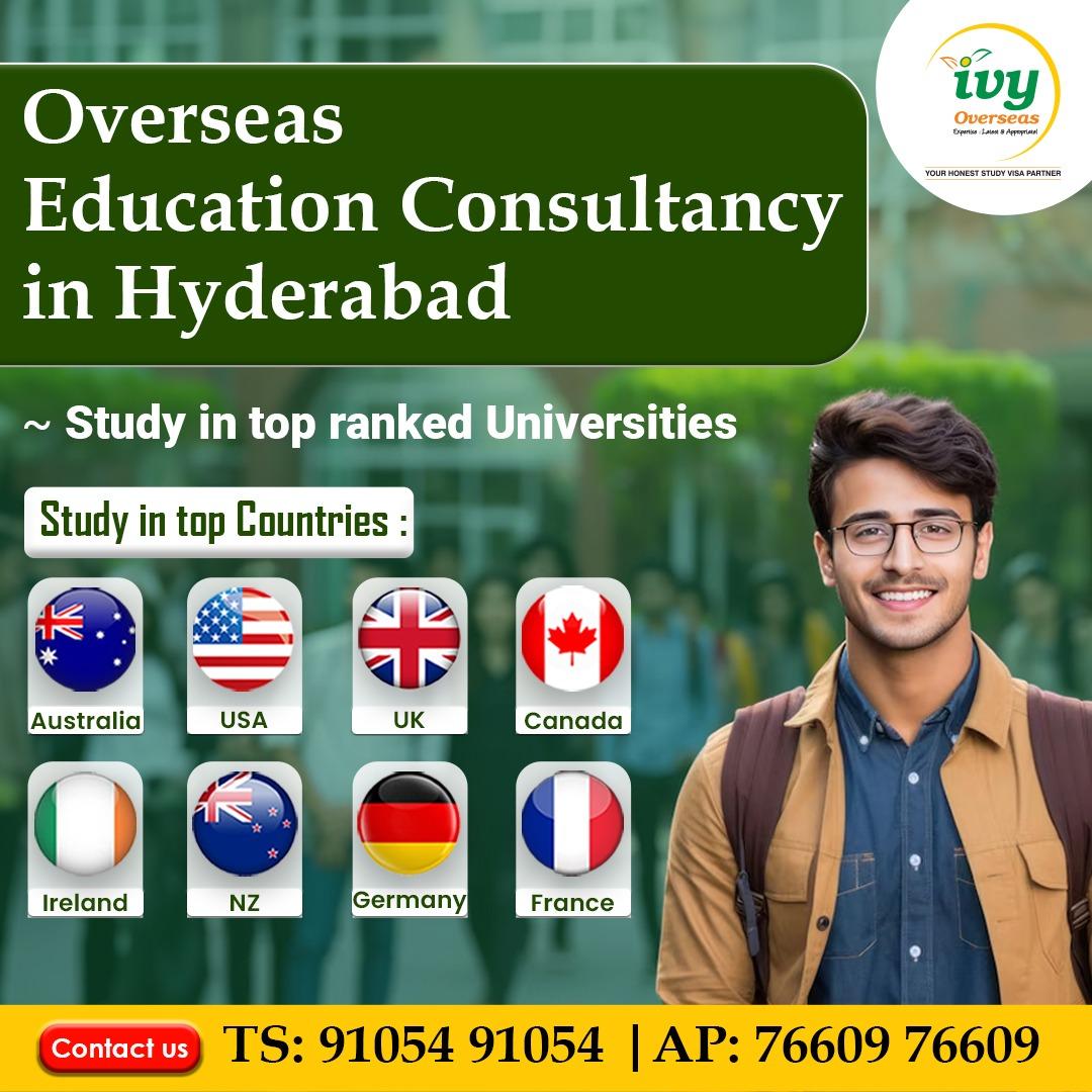 IVY Overseas is the "Best overseas education consultants in Hyderabad with AIRC ICEF & British council Certified consultant. IVY Overseas mission is to help the student community with the right advice to help them find a destination, a university and a program that fits into their academic needs and career aspirations. We have been doing this since 2011 and till date we have helped more than 20000+ students to realize their dream of studying abroad in destinations like - Australia, USA, UK, Canada, Ireland, New Zealand, France, Germany, Singapore and Dubai.