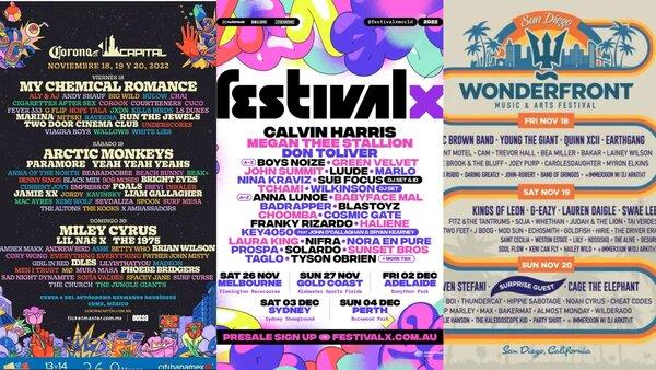 Line up> Arctic Monkeys, Miley Cyrus, Paramore, The Kooks, Two Door Cinema Club, The 1 My Chemical Romance, Cigarettes After Sex, and many more.