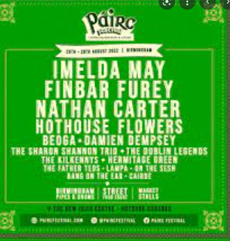 Saturday, 27th August dawned bright and clear and promised  warm and dry weather for the opening day of Pairc Festival, Birmingham's new celebration of Irish music and culture.  It was with excitement and enthusiasm  that I set out to cover the event for WhatsOn U.K.