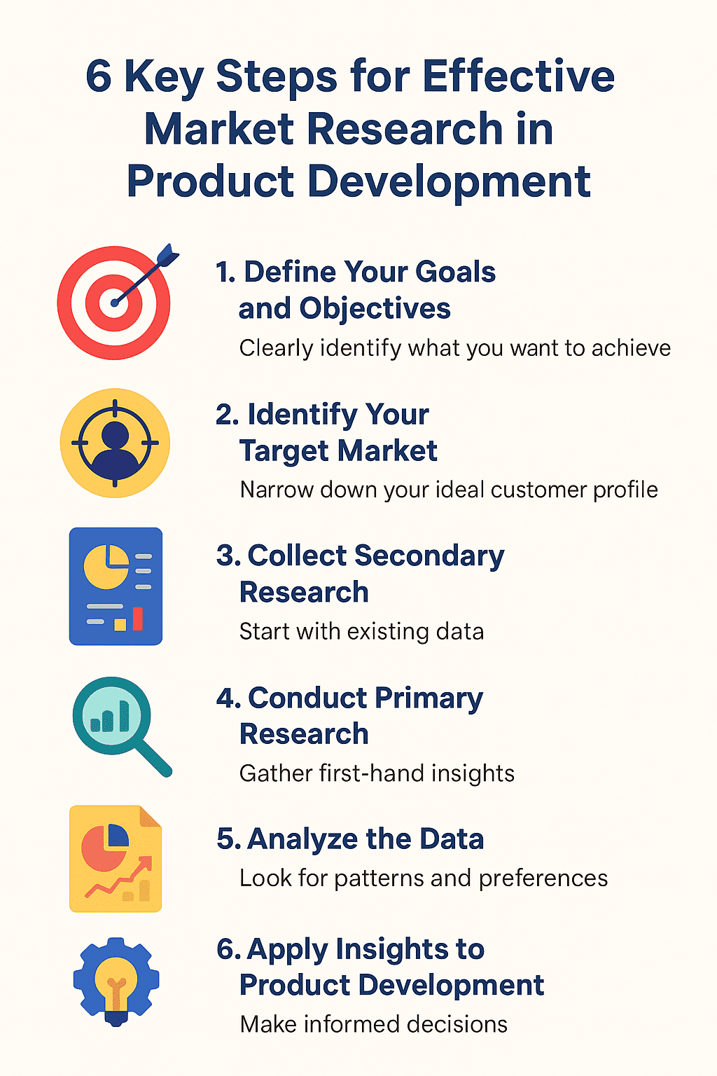 Effective market research for product development isn’t about collecting data—it’s about understanding your customers and market deeply. By following these 6 steps, businesses can minimize risks, improve decision-making, and launch products that resonate with their target audience.