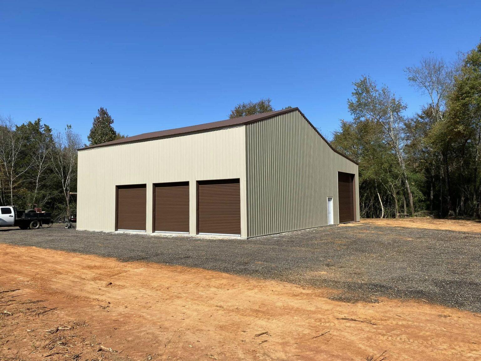 Pole barn construction is known for its durability and efficiency. The post-frame design evenly distributes the building’s weight, allowing the structure to withstand harsh weather conditions common in Alabama, including strong winds and heavy rain.
