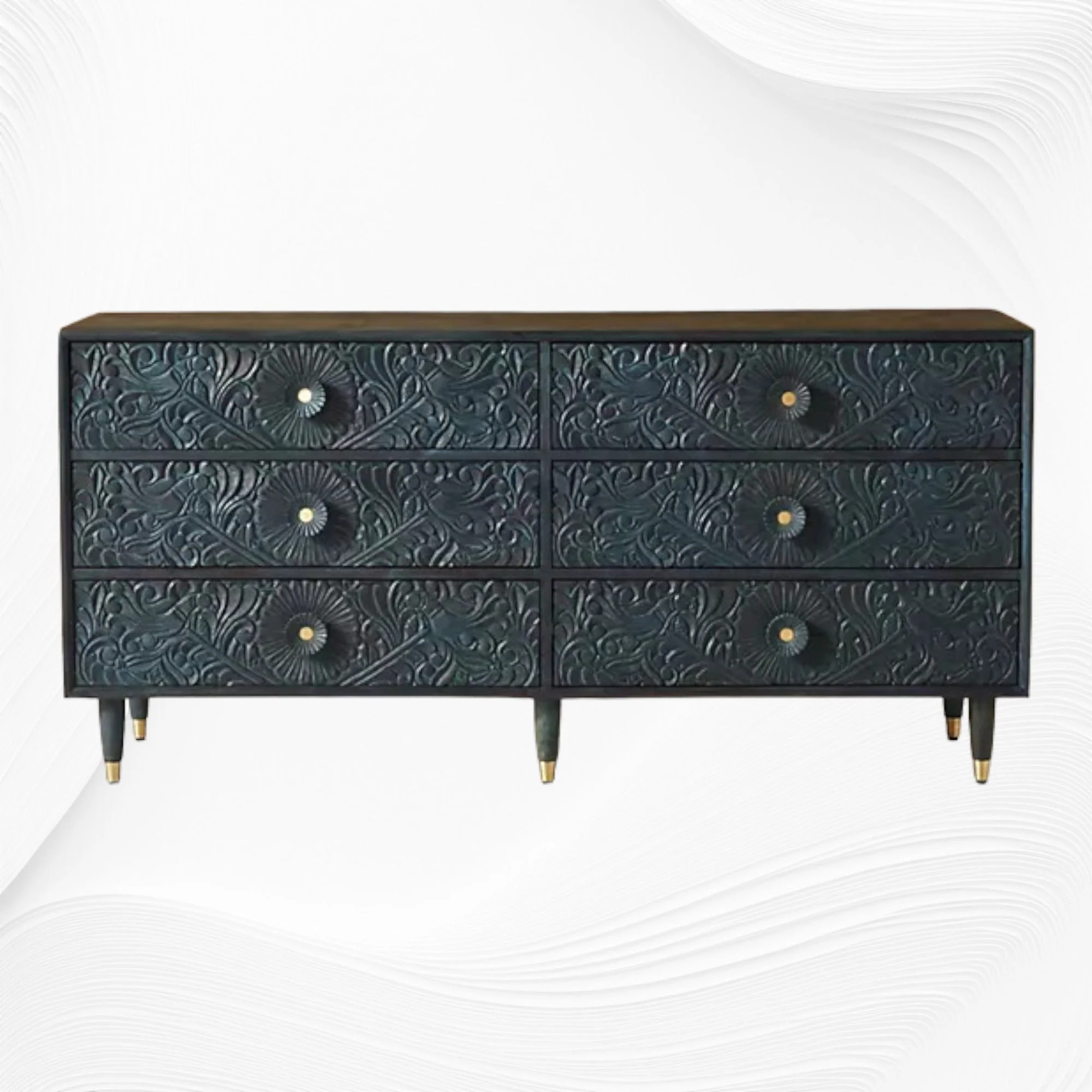 A wood carved sideboard also works well as a display unit, allowing you to showcase décor items while maintaining organized storage.