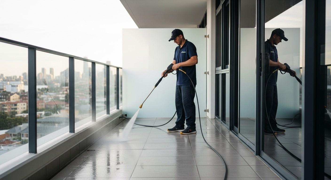 Professional apartment balcony pressure cleaning in Sydney uses controlled high-pressure water, mild surfactants, and targeted pre-treatments to safely remove accumulated dirt, mould, algae, lichen, grease, rust stains, efflorescence, and construction residue from balcony floors, grout lines, balustrades, sliding door tracks, ceilings, and drains. Professionals always begin with a full site inspection, drainage assessment, and test patch to confirm surface tolerance and avoid damage to tiles, grout, or the waterproof membrane beneath. They protect drains, nearby furniture, and glass; apply degreasers or mould treatments with proper dwell time; wash at the correct angle and distance to prevent grout erosion or sealant failure; rinse thoroughly; and perform a final slip-resistance check. Runoff is managed by pre-sweeping loose debris, spot-treating stains to minimise water volume, and directing wastewater away from storm drains where required by local stormwater authority guidelines—ensuring compliance with local council rules and preventing neighbour complaints or environmental issues. Strata, body corporate, or HOA committees typically require prior approval, coordinated access, and confirmation of quiet hours and water-point usage. Pricing varies by balcony size, surface type (tile, concrete, stone, timber), soil load, height/access difficulty, stain complexity, and drain protection needs. Outcomes include a restored, non-slip, hygienic balcony that looks fresh, feels safe, and lasts longer with reduced regrowth when paired with good aftercare. DIY attempts often lead to uneven results, grout damage, membrane risks, uncontrolled overspray, or safety incidents near edges, making professional service the reliable choice for apartment residents, property managers, and landlords.