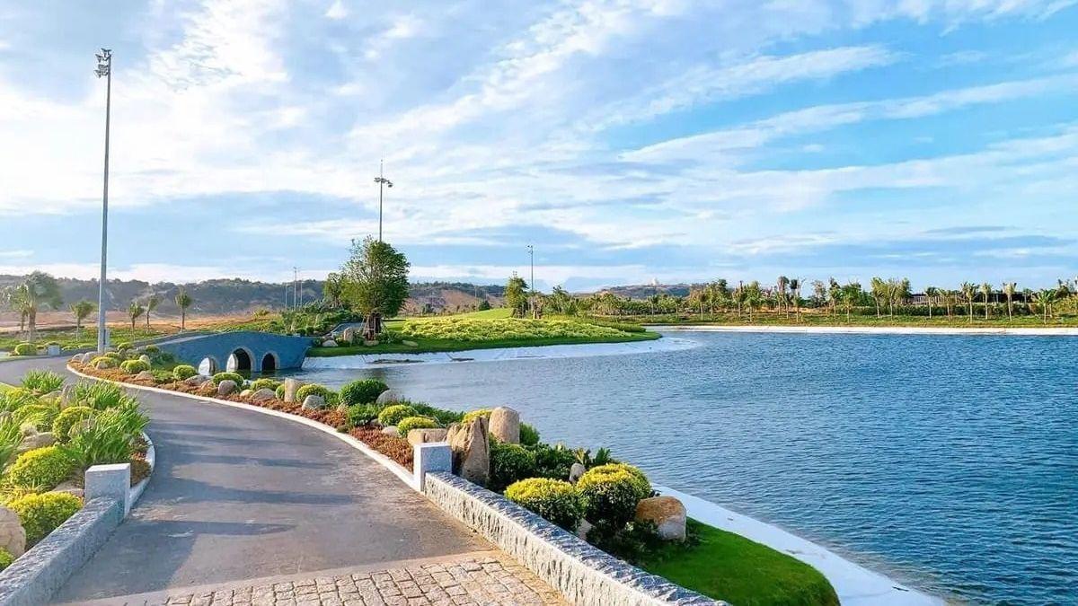Cảnh quan tại Caraworld *** Ranh được thiết kế với nhiều mảng xanh đa dạng, từ những hàng cây xanh tươi mát đến hồ nước trong lành, mang lại sự cân bằng về mặt phong thủy. Những con đường đi dạo uốn lượn qua vườn hoa đầy màu sắc, tạo nên không gian yên bình, thư giãn cho cư dân.