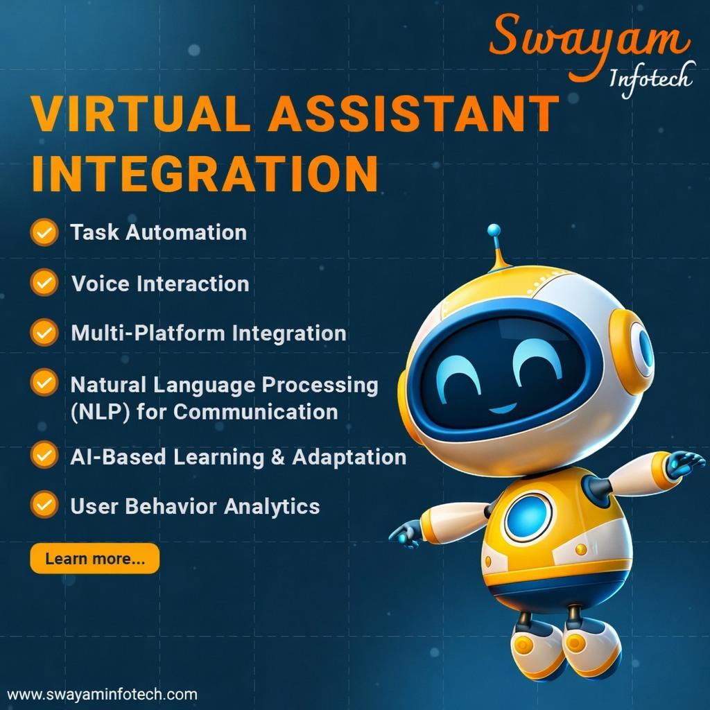 Explore our AI-powered Virtual Assistant Services for all industries and boost engagement , streamline operations , and personalize experiences . Our Virtual Assistant Integration services empower businesses with task automation, voice interaction, multi-platform compatibility, and advanced NLP for seamless communication .