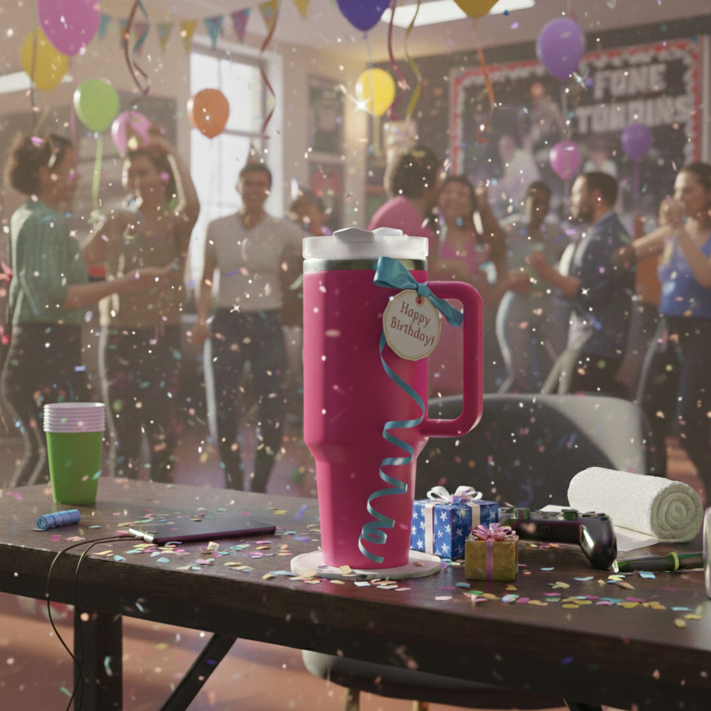 The product FAQ on the category page also presents the tumbler as a good gift choice for special occasions and mentions personalization as an option.
