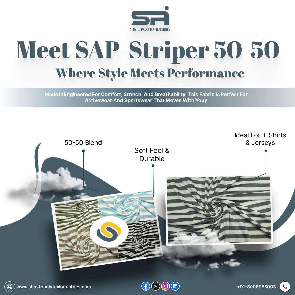 Shastri Polytex Industries offers high-performance sports fabric material designed for comfort, breathability, and durability. Recognized for producing the best fabric for sports in India and the best fabric for athletic wear in India, our sports textile in Ludhiana ensures flexibility and moisture control—perfect for activewear, jerseys, and fitness apparel manufacturers seeking quality and innovation. For more details, contact us at: +91 8008958003 or visit our website here: https://shastripolytexindustries.com/product-category/sports-fabrics/