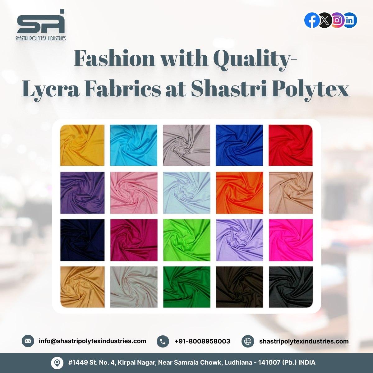 Premium Lycra Fabrics — Shastri Polytex Industries Explore the exceptional Lycra fabrics range at Shastri Polytex Industries, offering superior lycra fabric India blends tailored for stretch, comfort, and durability. Our collection includes top options like Micro 4 Way Lycra and Cotton 4 Way Lycra, ideal for activewear, fashion, and uniforms. Based in Ludhiana, we lead as preferred makers of lycra spandex fabric in Punjab with wholesale reliability. For more details, contact us at: +91 8008958003 or visit our website here: https://shastripolytexindustries.com/product-category/lycra-fabrics/ #lycrafabricIndia #lycraspandexfabricinPunjab #cottonlycrafabricinLudhiana #lycraclothmaterialIndia