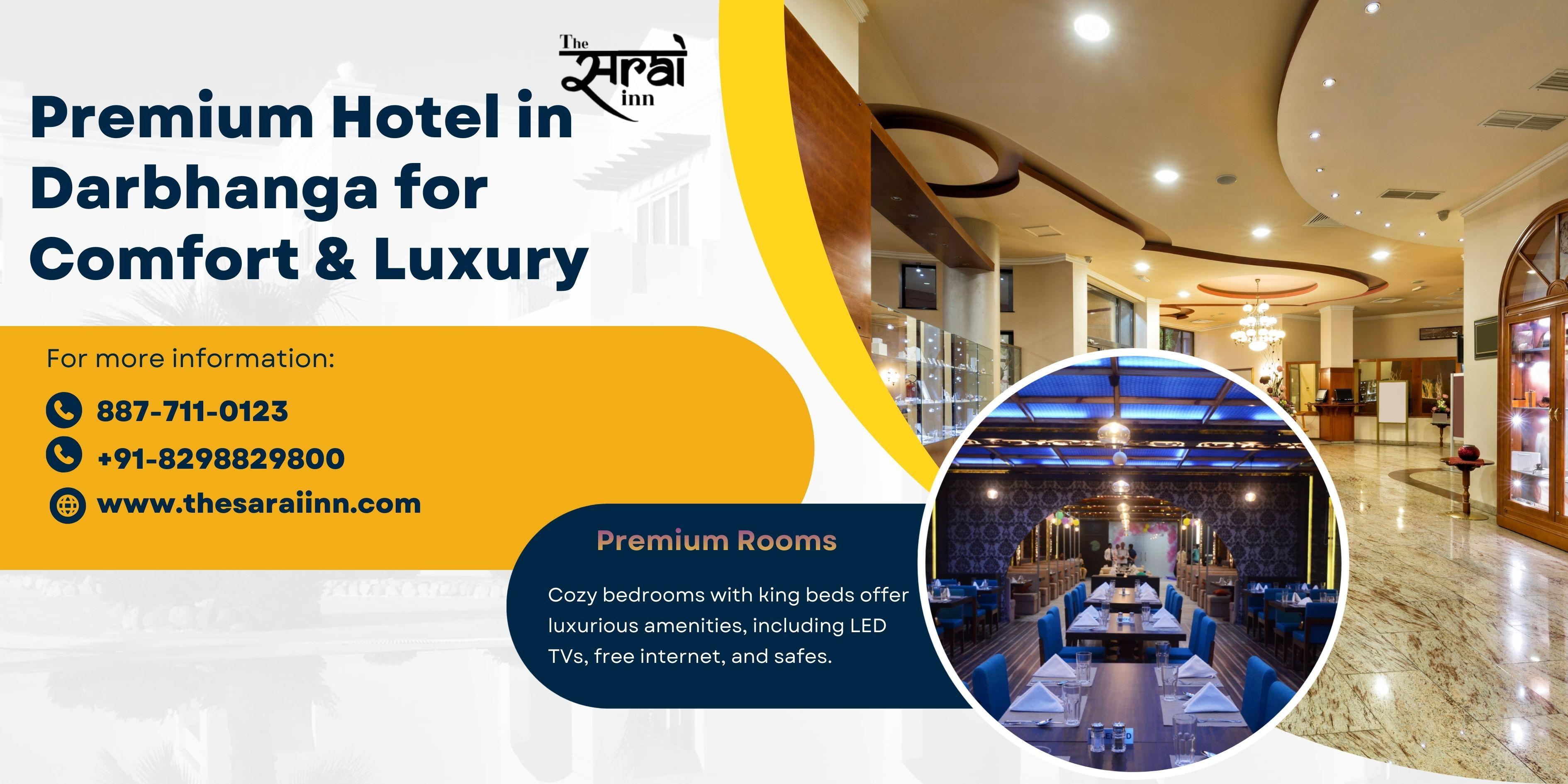 Premium Hotels Near Darbhanga Airport The Sarai Inn is one of the most convenient hotels near Darbhanga airport, offering comfort, modern amenities, and warm hospitality. Guests can enjoy well-furnished rooms, a cozy ambiance, and a relaxing stay for both business and leisure travelers. The in-house restaurant serves delicious local and continental cuisines. With easy access to the airport and nearby attractions, The Sarai Inn ensures a hassle-free, memorable, and enjoyable experience for every visitor. Visit Us : https://thesaraiinn.com/hotels-near-darbhanga-airport